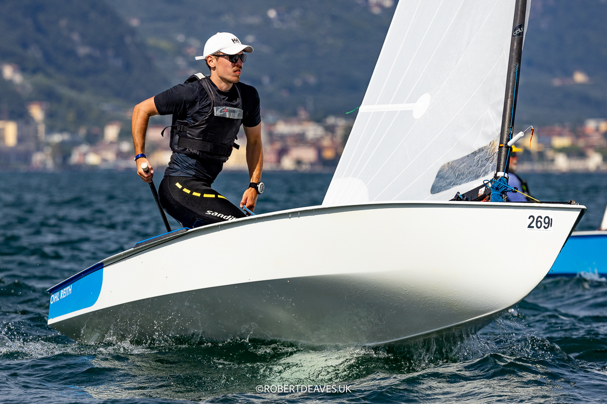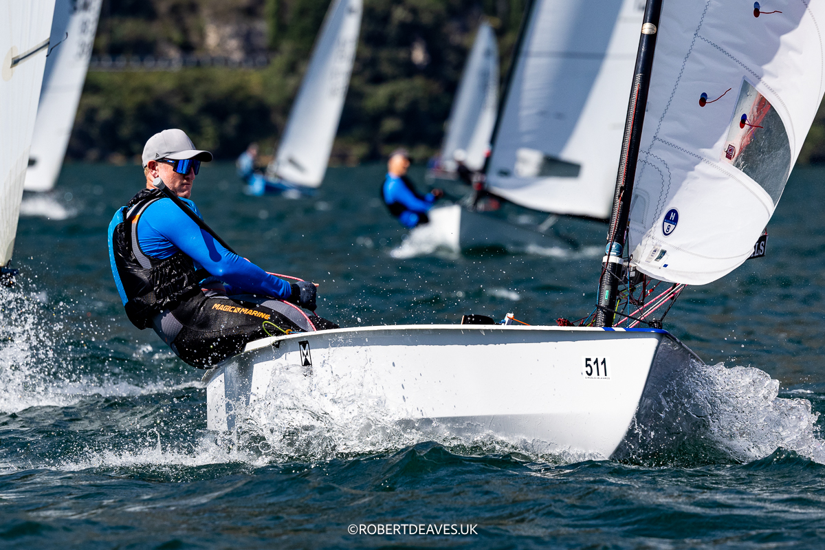 Britain’s Nick Craig holds narrowest of leads after the second day of racing at 2025 OK Dinghy World Championship on Lake Garda, hosted by Circolo Vela Arco. Both Craig and Andrew Mills added another race win each and are even on three points while third placed Charlie Cumbley, won both of his group races to end the day just one point behind. The other two race wins went to Germany’s Stefan Hoffmann and Sweden’s Niklas Edler.