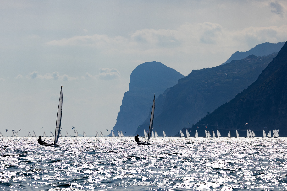 With three groups, every point gained or lost is the equivalent to three points. After the opening day, four sailors won at least one race and lead the rankings, but after Tuesday’s races this will surely change. In Race 1 the wins went to Flower, Mills and Craig. In Race 2, the wins went to Edler, after a tight battle with Denmark’s Bo Petersen, Mills and Craig. While some were dominant, there were many tight battles and hard fought mark roundings. But also, there was a euphoria in the fleet that only venues like Garda can bring.